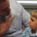 Es a partir del minuto dos del vídeo cuando vamos a ver ese día tan especial en el que el niño escucha por primera vez la voz de su padre. El niño se queda boquiabierto y con los ojos asombrados señala a la dirección de donde cree que procede el sonido. Su padre le dice que es él el que habla.