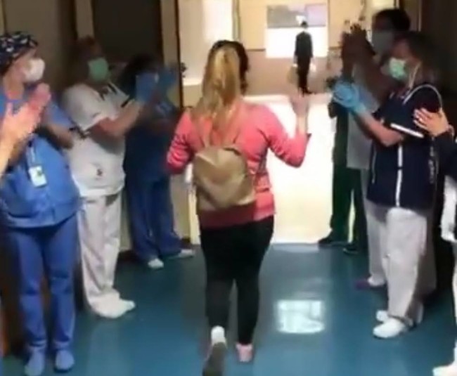 Para despedirla con todos los honores, los sanitarios hicieron un pasillo a la salida del hospital despidiéndola entre aplausos y gritos de "campeona" por haberle ganado el pulso a la enfermedad.