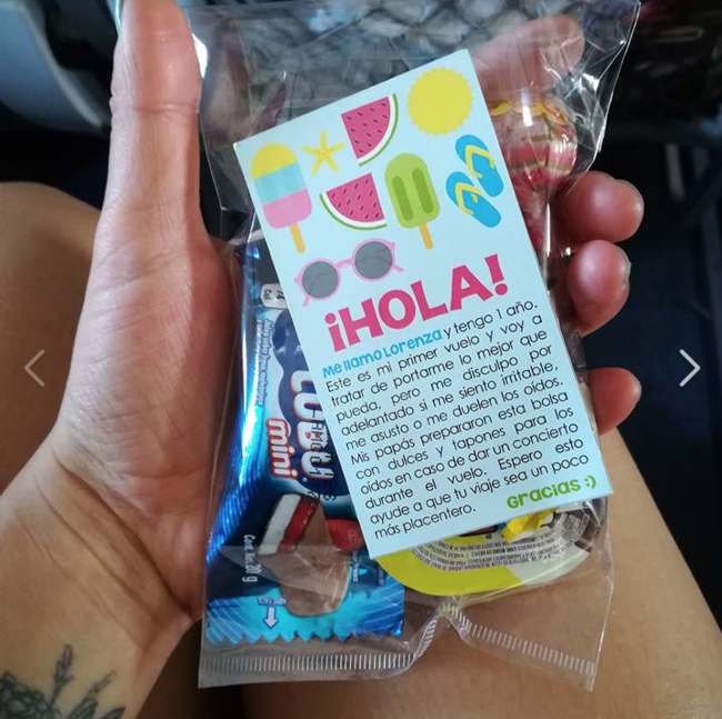 Así lo sintieron los padres de Lorenza, una niña de 12 meses que volaba por primera vez a Cancún, y que decidieron disculparse por adelantado con el pasaje regalándoles una bolsa de dulces y tapones para los oídos.