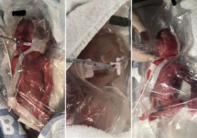 Tras nacer, cada una de ellas fue colocada en una incubadora independiente envuelta en una bolsa de plástico especialmente creada para funcionar como un útero artificial.