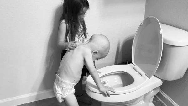 Junto a la desgarradora foto de su hija frotando la espalda de su hermano menor después de vomitar frente al retrete, ha publicado una conmovedora carta que se ha hecho viral.