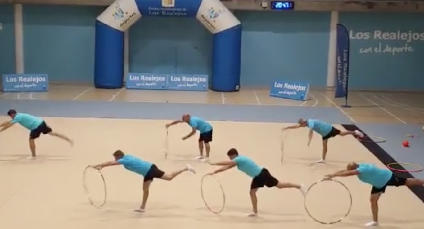 Era la clausura de curso de las niñas del Club de Gimnasia Rítmica Tazmania, de Los Realejos (Tenerife). De repente, al final de la exhibición, saltaron a la pista varios hombres con aros. Nadie se lo esperaba: los padres de las participantes habían preparado una coreografía.