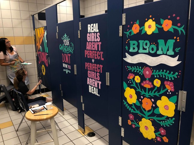 Con frases como "Eres increíble, eres valiente, eres fuerte" y "Trabaja duro, sueña en grande" los profesores de la escuela Warren en Forney, Texas, decoraron los baños de mujeres y hombres durante estas vacaciones.