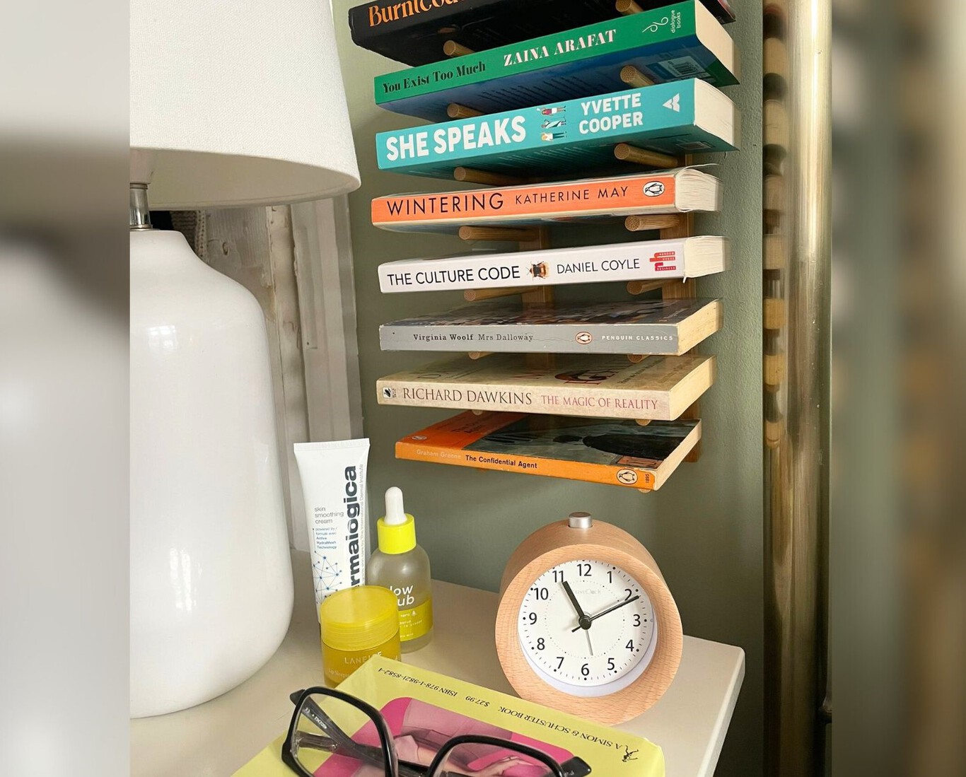 Naturalmente, en mi apartamento tengo varias estanterías llenas de todos los libros leídos y por leer, pero a veces resulta poco práctico que la mayoría de ellos estén en un solo lugar (la habitación en la que hago teletrabajo desde hace años), o que no tenga un espacio adecuado al lado de mi cama para tener los libros que me encuentro leyendo actualmente.