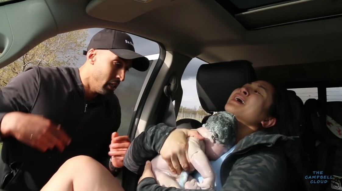 Troy y Erika Campbell, una pareja de Whitby, Ontario, se dirigían al hospital más cercano porque ella había comenzado a sentir contracciones de parto de su tercer bebé. Decidieron que iban a grabar todo el proceso para su canal de Youtube y por eso colocaron una cámara dentro del coche, pero nunca imaginaron que el parto sucedería ahí mismo.