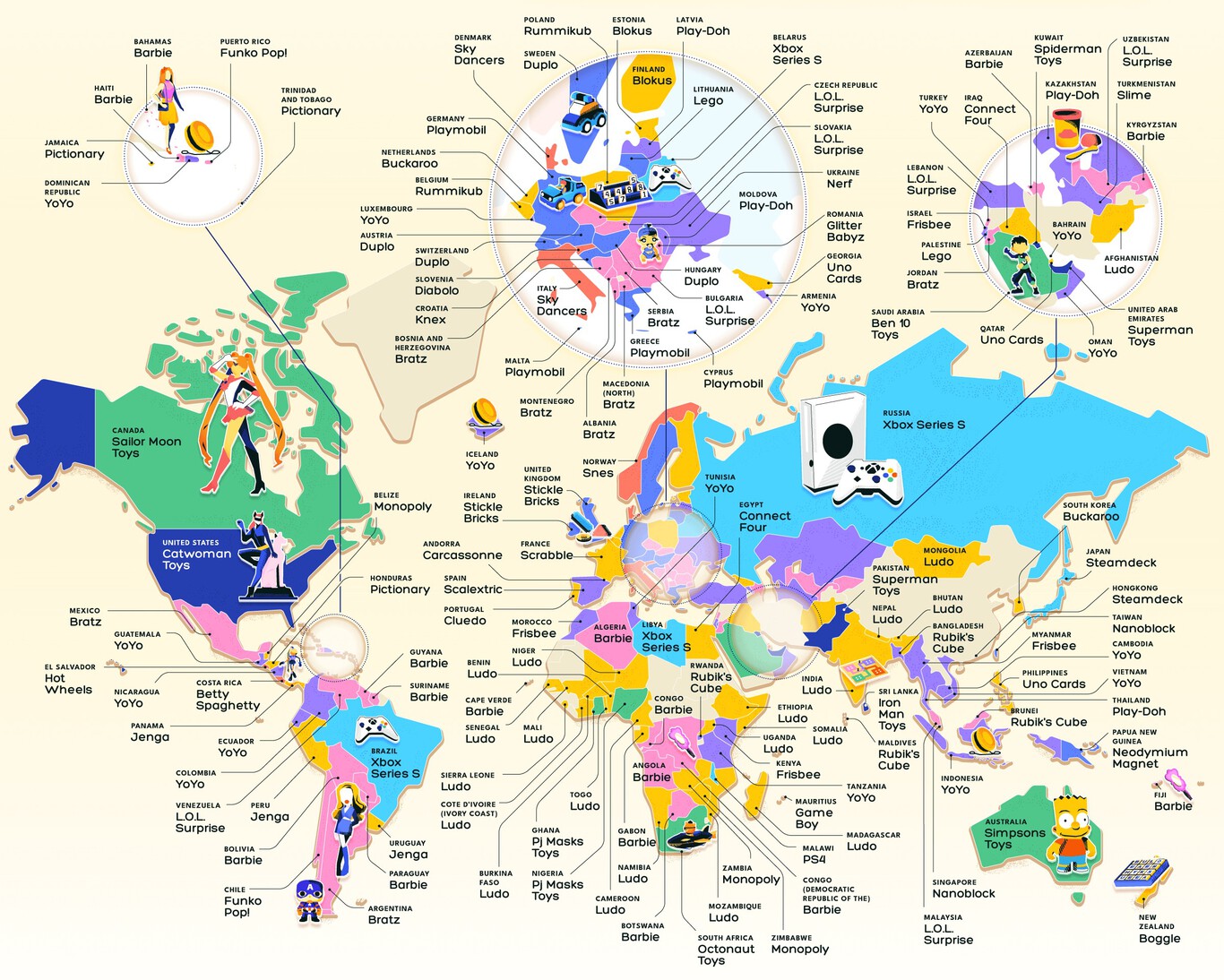 De acuerdo con la investigación y reporte realizados por The Toy Zone, Ludo se ha colocado en el puesto número uno de los juguetes más populares en el mundo, gracias a su preferencia en 20 países. Pero Barbie no ha quedado muy atrás, ya que se ubica en el segundo lugar, empatado con otro juguete clásico: el yoyo o yoyó, ambos favoritos en 16 países.