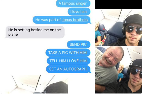 When your Dad sits next to Nick Jonas on an airplane and has no idea who is is. pic.twitter.com/dkTH9GwCsn