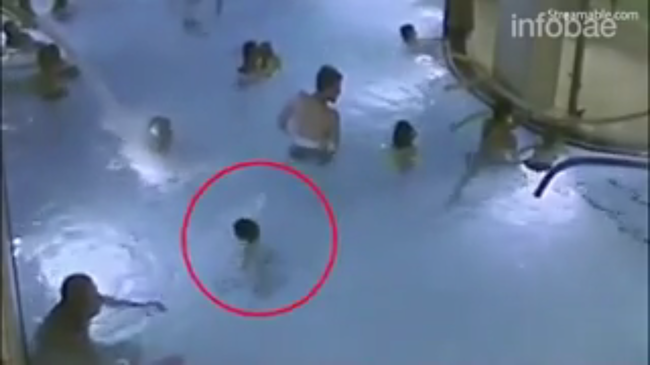 Y es que tanto los adultos que se encontraban en la piscina como otros niños, pasan a escasos centímetros del pequeño sin percatarse de lo que está ocurriendo, pensando seguramente que estaba jugando o haciendo volteretas en el agua.