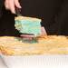 Es una lasaña con queso teñido de rosa o azul, según sea el caso, y que por fuera se ve como una lasaña normal, pero que al cortarla se descubre el color correspondiente al sexo del bebé.