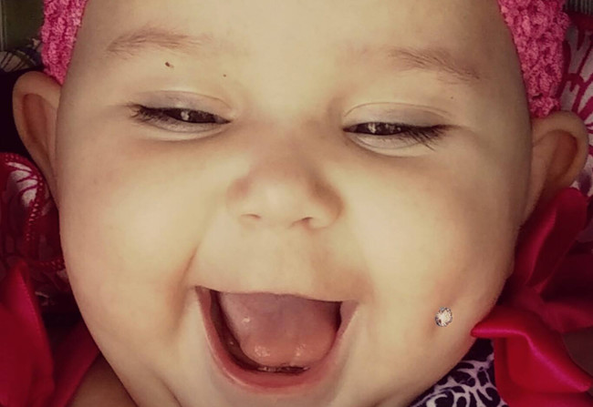 Para probar un punto acerca de esto, ella decidió hacer un experimento social y publicó en su cuenta de Facebook una fotografía de su pequeña hija en donde podemos ver el piercing que aparentemente le colocó en la mejilla.