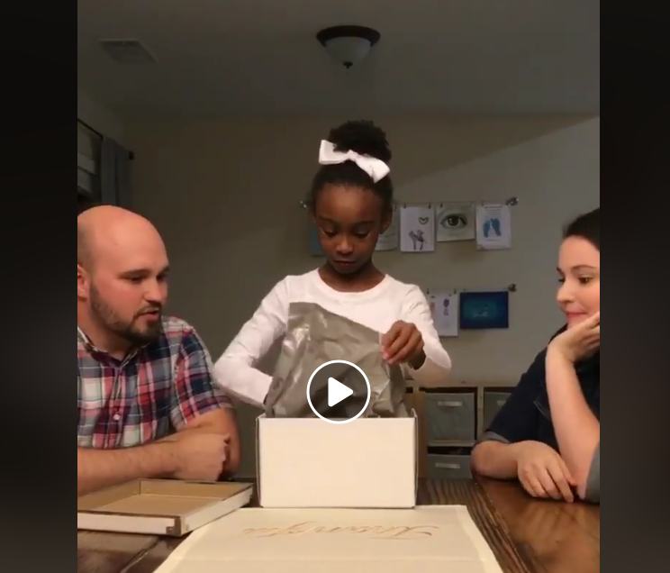 "Este es el mejor vídeo que he compartido. Fue el día en que le dijimos a nuestra hija que íbamos a adoptarla tanto a ella como a sus hermanos. Ella llevaba mucho tiempo rezando para ser adoptada, y quisimos que supiera la noticia el día de su cumpleaños. Así que le dimos esta caja con la sorpresa: ¡El momento era perfecto!
