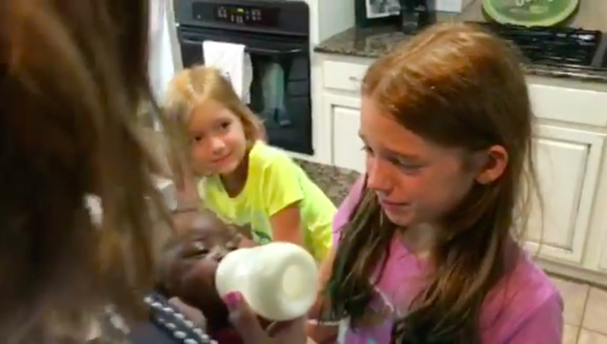Las reacciones de las hermanas mayores, Raygen y Harper, de once y seis años, son impagables. Las dos ven a su nueva hermanita llamada Celsey Marie y empiezan a llorar de felicidad. Y por supuesto, no les importa su color de piel. Ni siquiera lo mencionan o reparan en ello, porque no es importante. Lo verdaderamente importante es que es una bebé que necesita el amor de una familia. Van a amarla y punto. La pequeña es el tercer bebé adoptado por la familia, uno de ellos con discapacidad.