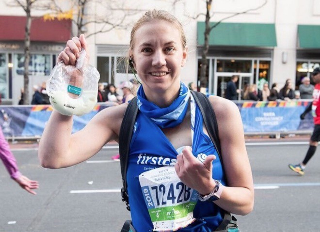 Molly Waitz es una madre de 27 años que dió a luz a su bebé Bode hace ocho meses. El pasado fin de semana corrió por primera vez una maratón, la de Nueva York, y como está amamantando a su hijo, no sabía cómo hacer para poder correr durante varias horas. Decidió entonces utilizar un sacaleches portátil durante la carrera, con el que se extrajo medio litro de leche materna.