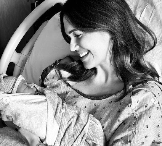 "¡Ozzi está aquí! Oscar Bennett Goldsmith llegó un poco tarde pero con mucho aplomo (y una entrega más fácil/más rápida que su hermano mayor, para deleite de sus padres). Cada adagio es cierto: nuestros corazones se han duplicado en tamaño y la inmediatez del amor es asombrosa. ¡Está más allá de las palabras y estamos muy agradecidos por nuestra familia de cuatro!"