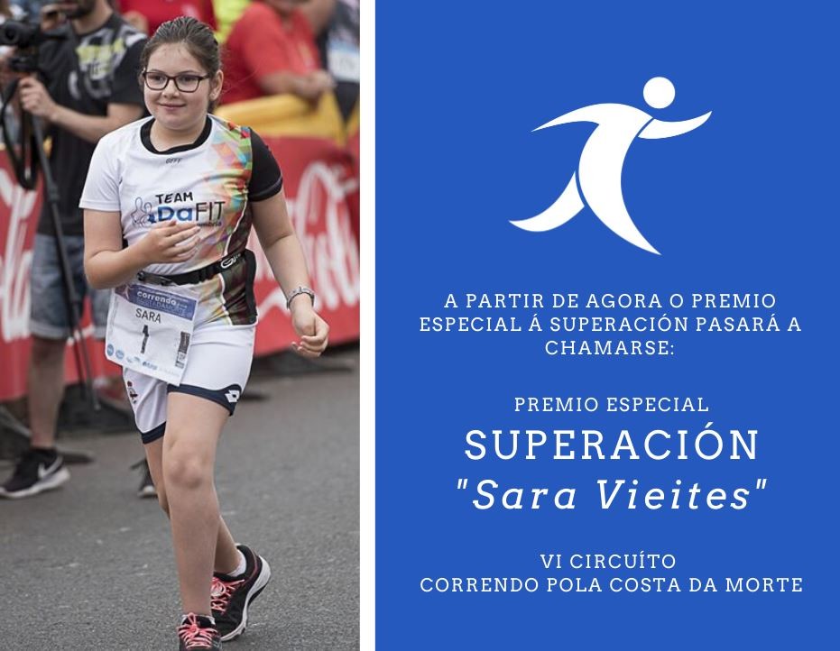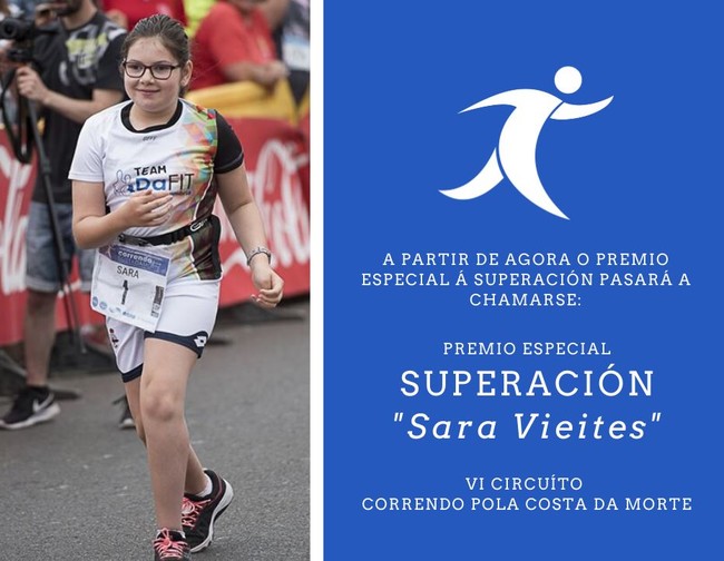 Pero como Sara Vieites es todo un ejemplo de superación y lucha, la organización también ha decidido poner su nombre a este trofeo, y será la propia niña quien lo entregue durante la celebración del VI Circuito 2019 que tendrá lugar el 13 de diciembre.