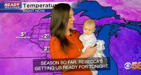 Rebecca Schuld es una meteoróloga del canal de televisión WDJT de Milwaukee, Wisconsin (Estados Unidos), que acaba de ser madre y trabaja desde que casa debido a las restricciones del Covid desde que terminó su licencia de maternidad tras dar a luz a su hija Fiona, de 13 semanas.