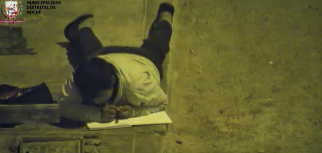Víctor Martín Angulo Córdoba tiene 12 años. Su historia se ha hecho viral después de ser captado por una cámara de seguridad de Moche, el distrito de Perú donde vive, mientras hacía los deberes a la luz de una farola.