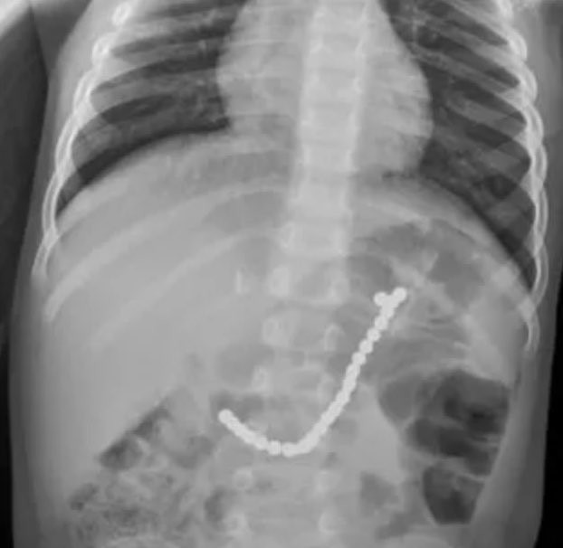 "Fue una suerte que le hicieran esa radiografía porque descubrieron algo en su vientre. Vieron lo que parecía un brazalete de cuentas o pequeñas bolas unidas en el estómago y el intestino".