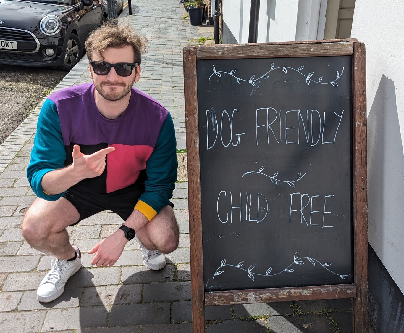Ha sido en su cuenta @hifromkyle donde el joven ha publicado una fotografía en la que aparece sonriéndole a la cámara. ¿La razón? El cartel de un establecimiento que pone "Dog friendly, child free", señalando que mientras los perros son bienvenidos dentro del local, los niños no. "Encontré mi nuevo sitio", escribió el chico junto a la imagen.