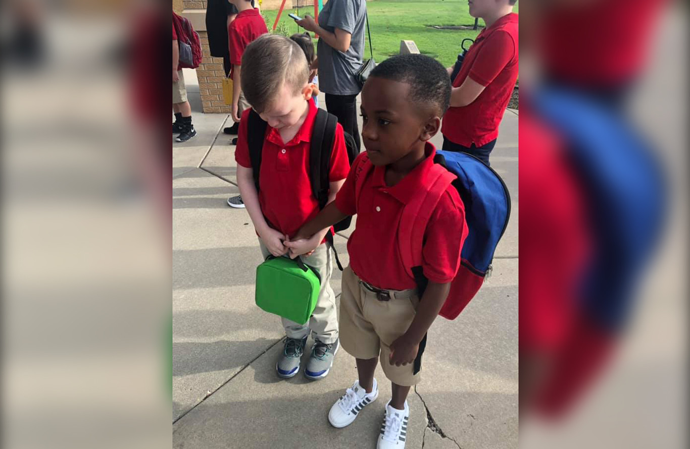 La fotografía, que ahora se ha vuelto viral, fue tomada y publicada originalmente por Courtney Moore, la madre de Christian, el niño de 8 años que podemos ver tomar de la mano a su compañero, quien quiso capturar el primer día de clases de su hijo y se llevó algo mejor: un momento muy especial entre él y otro compañero que se encontraba llorando.