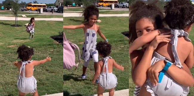 Para muestra de ello, el más reciente vídeo viral de una pequeñita de un año de edad, quien tras esperar ansiosamente a que su hermana mayor volviera del cole, ambas niñas corren hacia la otra para darse un abrazo lleno de amor.