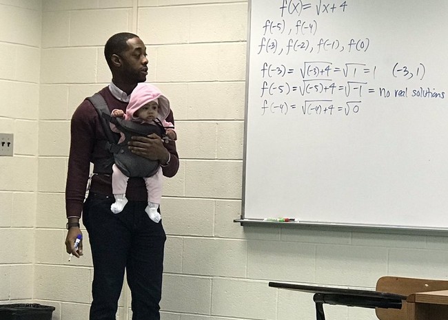Hace unos días uno de sus alumnos, Wayne Hayer de 26 años, se presentó en clase con Assata, una bebé de cinco meses, porque no tenía con quien dejarla, y el docente decidió portearla para que su padre pudiera coger los apuntes de álgebra.