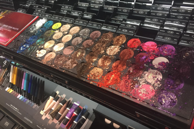 Brittney Nelson es maquilladora profesional y el sábado 11 de noviembre estaba comprando en una tienda de Sephora cuando algo le llamó la atención. El expositor de las sombras de ojos de la marca Make Up For Ever estaba destrozado, los colores mezclados y muchas de las paletas habían sido hechas pedazos o tenían profundos surcos de dedos.
