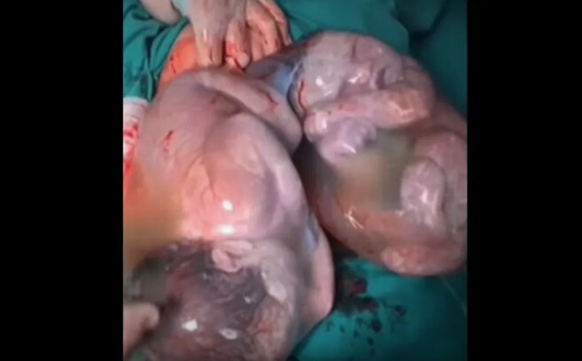 Este caso es aún más raro, dado que ambas niñas nacieron dentro del saco amniótico intacto y moviéndose como si todavía estuvieran dentro del vientre materno.