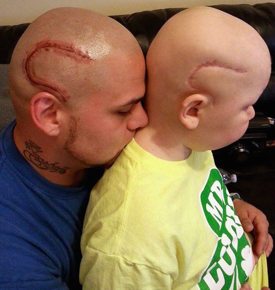 Muchos padres de niños con cáncer se rapan la cabeza para solidarizarse y dar apoyo a sus pequeños ante una noticia tan devastadora. Es importante para ellos saber que cuentan con el respaldo incondicional de sus padres en una situación que es muy dura tanto para unos como para otros. Josh Marshall, un padre de Kansas, ha ido más allá y se ha hecho un tatuaje igual a la cicatriz de su hijo Gabriel de 8 años, operado de un cáncer cerebral, para darle confianza.