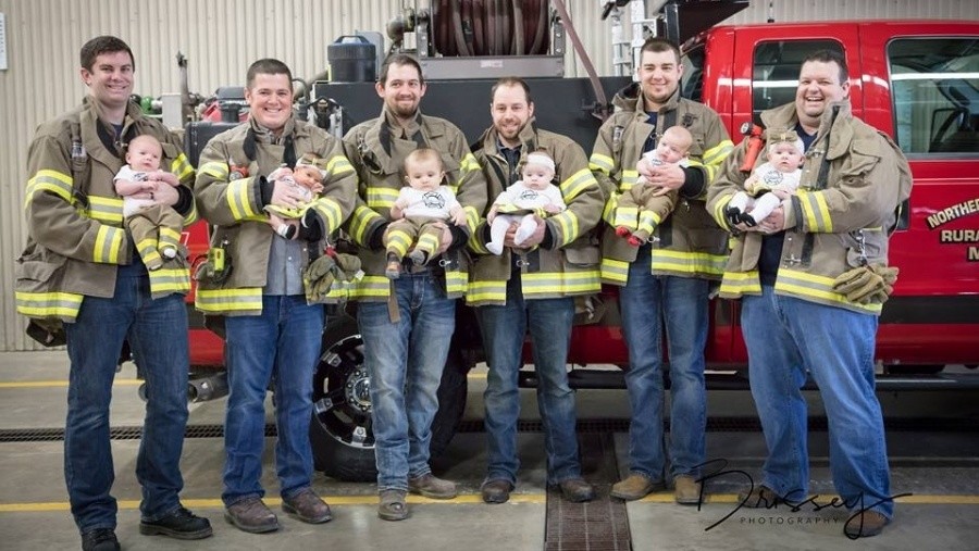 Para celebrar la noticia la fotógrafa Debbie Brissey les realizó una sesión de fotos en la que participaron todos los padres junto a sus bebés. En una de ellas podemos verlos sosteniendo a sus recién nacidos delante del camión de bomberos en sus chaquetas de fuego, mientras que en otra, los bebés han sido colocados en círculo sobre las chaquetas de sus respectivos padres.