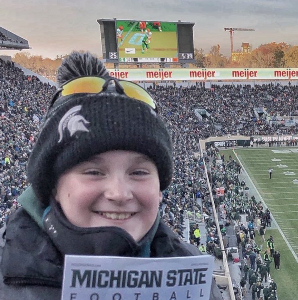 "Querido entrenador D'Antonio, señor Lewerke, MSU Fútbol y fans de los Spartans: Mi nombre es Fraser Harntell y tengo nueve años. He sido fan de los Spartans durante mis nueve años. Mi abuelo y mi padre fueron a la MSU y yo espero ir allí.