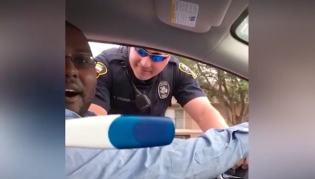 En un vídeo publicado en Facebook, vemos a Jarred, un veterano del ejército de Estados Unidos, que iba conduciendo con su esposa Nikki cuando fueron detenidos por un coche patrulla. Al orillarse el oficial de policía resultó ser un conocido de la pareja, por lo que se saludan de manera amigable.
