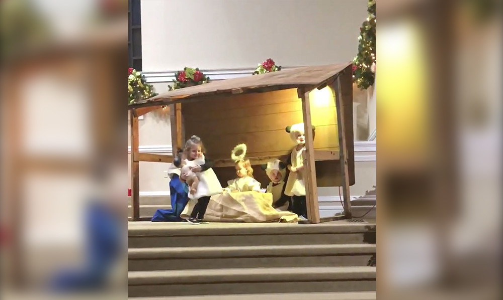 Y aunque Collia logró colocarlo nuevamente en el pesebre para continuar con la representación, Teegan volvió a tomarlo en brazos. Así que otra vez Collia intentó quitárselo para ponerlo en el pesebre, pero ahora Teegan no lo soltó y las pequeñas comenzaron a pelear por el bebé, haciendo que interviniera un adulto para separarlas.