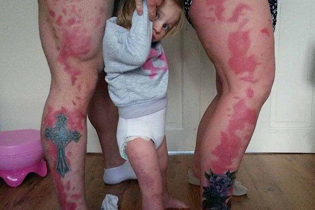 Entonces Tanya, la madre, no lo dudó un segundo. Para su 40 cumpleaños pidió como regalo el tatuaje y convenció también a su marido para tatuarse en tinta durante cuatro horas las mismas marcas de su hija en las piernas.