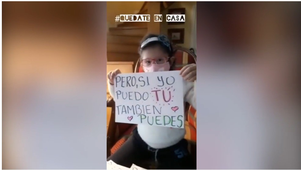La niña quiso también agradecer a todo el personal de salud de los hospitales públicos y privados por poner en riesgo sus vidas para cuidar la de otros, y volvió a pedir a todos que nos quedemos en casa.