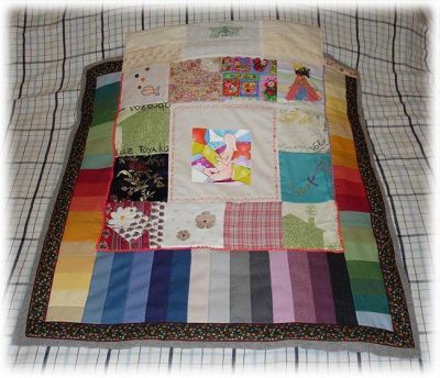 Es un patchwork, una manta maravillosa que me ha enseñado una amiga a quien se la acaban de regalar. Ella tendrá a su bebé en marzo. Ha recibido este precioso regalo con el que se arroparán ella y su hijita. Lo más emocionante es que la han creado entre varias amigas, cada una poniendo un cuadradito de una tela especial o bordando algo. Es una manta que abriga no solo con calor, también con amor. Estoy segura que si a alguna mamá expectante la sorprendeis con algo así no lo olvidará nunca como le va a pasar la receptora de esta preciosidad.
