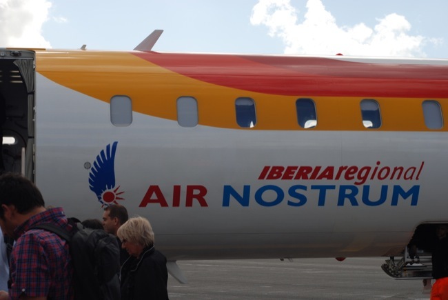Cuando eres mayor demandas que el momento del embarque en el avión sea lo más breve posible, por eso se inventaron los fingers o esos pasillos que permiten que se embarque en el avión sin pasar por el autobús y sin que se pierda excesivo tiempo antes de ir al aire. Sin embargo esa comodidad tiene una sensación de que prácticamente no se es consciente de que se está en un avión porque ni lo ves. Y eso para los niños es aburrido. Así que en los vuelos de Air Nostrum, una de las compañías líderes españolas, los niños se lo pasarán bien porque a sus aviones se embarca y desembarca a pie de pista y los chavales pueden ver una de esas máquinas desde muy cerca accediendo o descendiendo al avión por las escalerillas directamente y tal y como se ve en la imagen.