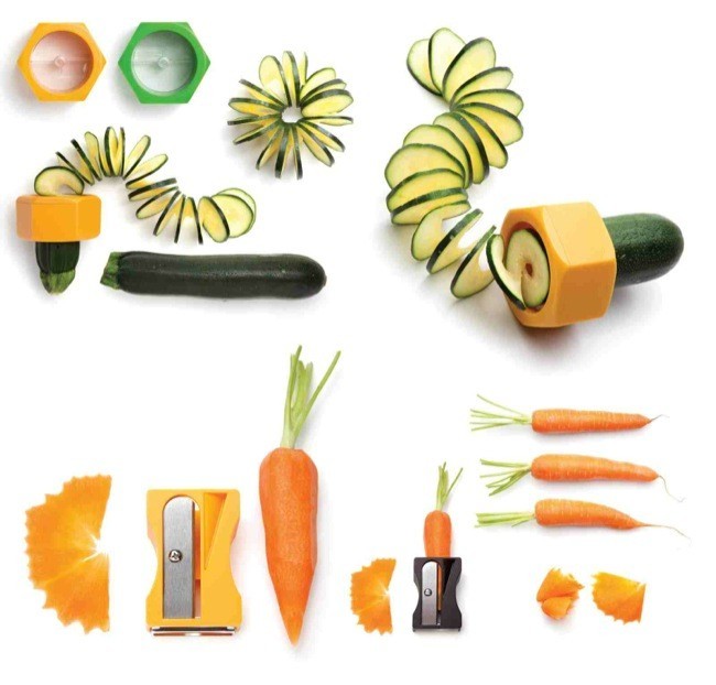 Avichai Tadmor ha obtenido su título en la escuela de Arte y Diseño de Jerusalén. Sus creaciones son sorprendentes, muy prácticas y en este caso son tremendamente atractivas para motivar a los peques a divertirse con las verduras. En la imagen se puede ver un cortador de pepino y de zanahoria que parecen animar a que lo que se cree con ellos es irresistible. Estoy seguro que de la cocina en casa con estos accesorios puede hacerse mucho más entretenida, divertida, genera grandes posibilidades creativas y por supuesto los niños se lo pueden comer después.