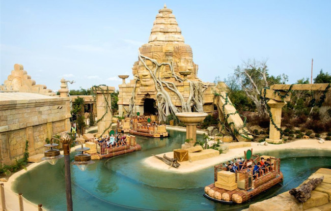 Angkor está llano de sorpresas, la primera es que se trata de participar en una batalla naval por un recorrido temático en el que se recrean la vegetación y los templos de Camboya. Así, mientras niños y mayores realizan el recorrido subidos en balsas, se encontrarán con poblados, elefantes de piedra y varios desafíos a los que hacer frente.