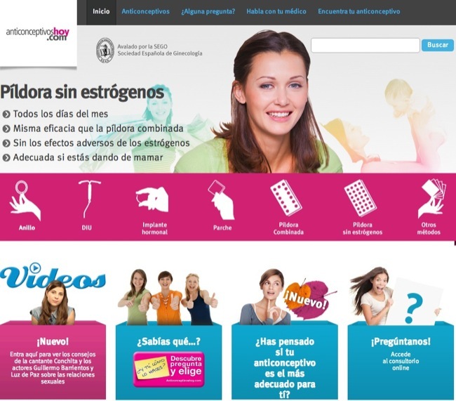 La página en Internet anticonceptivoshoy.com es una plataforma online dirigida a un público joven con información completa y fiable sobre todos los métodos anticonceptivos hormonales. Permite visualizar de manera rápida y sencilla todos los métodos y también compararlos entre si. El sitio está avalado por la SEGO (Sociedad Española de Ginecología y Obstetricia).