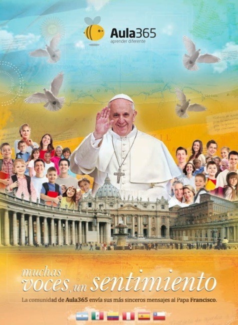 Hace un mes hablábamos de que en la audiencia con el Papa, Pablo Aristizabal, CEO y creador de Aula365, Mario Vázquez, director de Aula365 y José María Álvarez Pallete, COO de Telefónica, habían hecho entrega del ejemplar construido por la comunidad educativa Aula365 al Papa Francisco. Acabamos de recibir el correo de Aula 365 indicando el enlace al libro que finalmente han editado, accesible en pdf, y que recopila más de 1.300 mensajes de niños, docentes y padres de Argentina, Perú, México, Chile, Colombia y España.