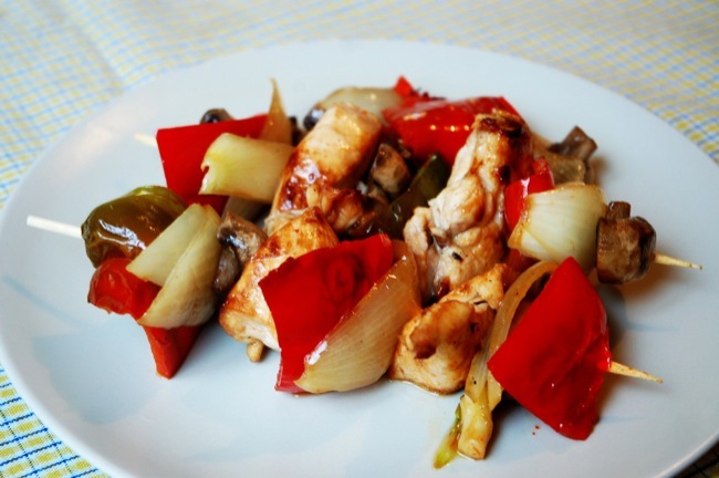 El plato que hemos elegido para esta semana no puede ser más sencillo y sano, se trata de unas brochetas de pollo a la plancha con champiñón, pimiento rojo y cebolla.