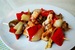 Cuando vayamos a preparar la cena, cogeremos un palillo para brocheta e insertaremos champiñón, un trozo de pollo, un trozo de cebolla y un trozo de pimiento rojo y de nuevo empezaremos con el champiñón seguido de los demás ingredientes hasta que la brocheta este llena, las iremos apartando a un plato.