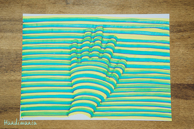 La manualidad es muy sencilla porque sólo se necesita una hoja de papel, un lápiz, pinturas o rotuladores variados, mejor cuanto más llamativos sean los colores, y paciencia para adquirir habilidad y técnica. Para conseguir el efecto en Microsiervos nos explican que la clave es realizar unas pequeñas curvas al trazar las líneas horizontales y rellenar las bandas que quedan entre las líneas con tres colores distintos y siempre en el mismo orden.