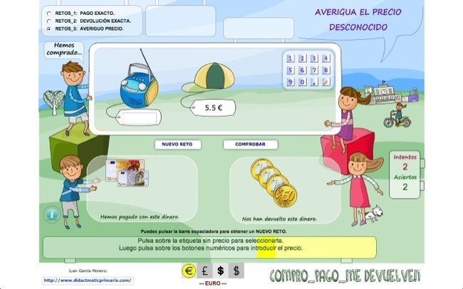 En su página en Internet Juan explica con todo detalle cómo sacarle el máximo partido. Lo recomiendo para los padres para ver cómo está el conocimiento de los peques cuando nos preocupamos por cómo avanzan. Esta aplicación es extraordinaria para evaluar los conocimientos de los hijos aunque la opción de ir con nuestros peques al supermercado y dejarles pagar también me gusta mucho para ver cómo se desenvuelven en una situación real prestando atención. Y es que la rutina de pagar requiere reflexión para elegir las monedas y billetes, asociarlo al pago a realizar y estar pendiente de las vueltas a recibir.