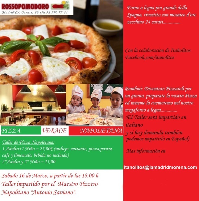 La cita es el día 16 de marzo de 2013 en Rosso Pomodoro (C/ Orense, 83) y el maestro pizzero napolitano, Antonio Saviano, enseñará a lo más pequeños a elaborar la auténtica pizza.
