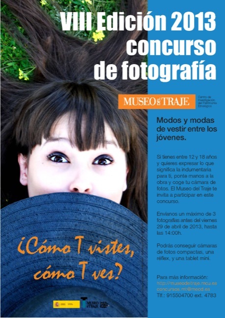 El Museo del Traje organiza la VIII Edición del concurso de fotografía ¿Cómo T vistes, cómo T ves? que pretende captar cuáles son los modos y las modas de vestir de los jóvenes actuales. Es un concurso dirigido a jóvenes de entre 12 y 18 años para que ellos mismos reflejen en imágenes qué utilizan para vestirse, cómo se identifican y diferencian. Se trata de una propuesta muy interesante para los jóvenes creativos en fotografía y moda. También me atrevo a decir que es una muy buena forma de recoger en imágenes las características de la juventud en España. He estado mirando imágenes de ediciones anteriores y es una buena práctica que ilustra la situación actual de la moda entre los peques y adolescentes.