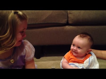 Mientras tanto, el bebé no entiende lo que le pasa a su hermana pero le parece muy divertido porque no deja de mirarla y sonreír.