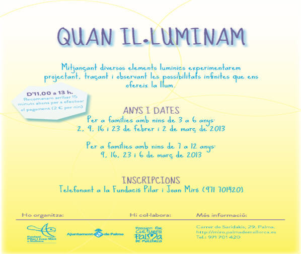 Se realiza en la Fundación Pilar y Joan Miró de Palma de Mallorca, quienes llevan a cabo periódicamente dos talleres distintos: uno para familias con niños de entre 3 y 6 años y otro para familias con niños de entre 7 y 12.