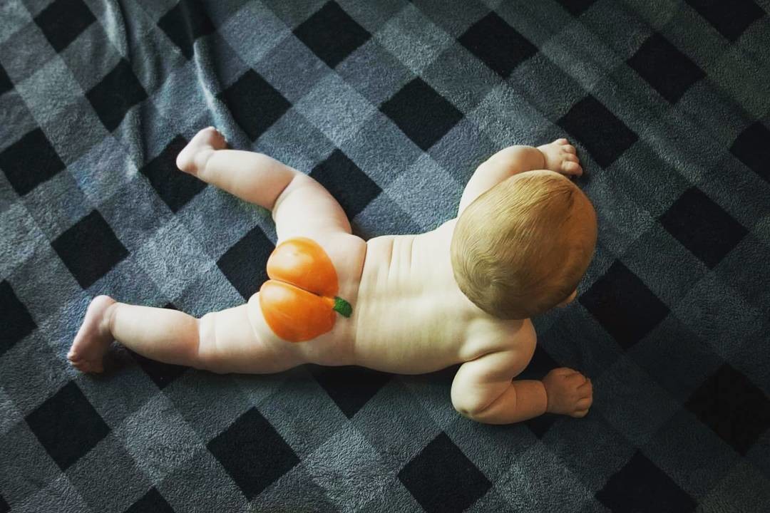 Con la proximidad de Halloween, Instagram se está llenando de adorables culitos de bebés pintados de calabazas naranjas bajo la etiqueta #pumpkinbutt. También con minicalabazas colocadas en perspectiva como si fueran el culito del bebé, como la moda de las frutas y flores que ha llegado a la red social.